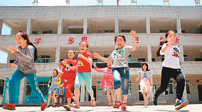 6月27日,四川省夹江县龙沱乡三星小学学生在玩耍。