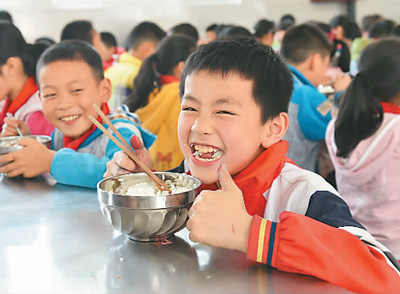 四川省三台县新生镇小学学生吃午餐。