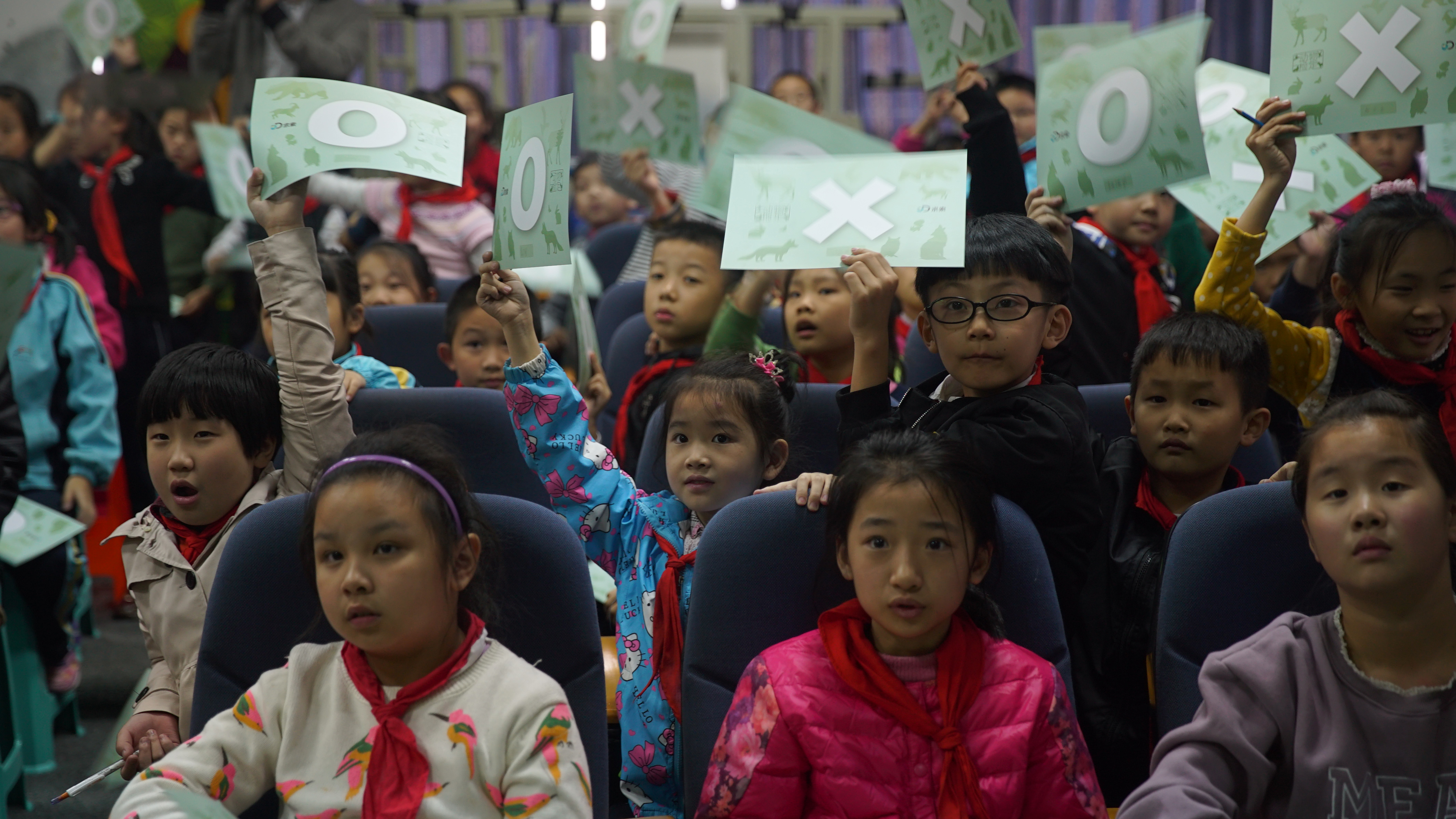 活动的形式虽然简单,但过程真是非常有趣,在主持人河马老师的串联下,同学的情绪十分高涨。茅以升实验学校的孩子们真是让人刮目相看,他们很快就进入了状态,开始的几题,完全难不倒这些三年级的同学们。而随着题目难度的提高,紧张的竞争氛围也开始在课堂上逐渐蔓延,有的孩子遗憾的坐下,却发现下一题才是自己的强项;有的孩子谨慎的举牌,并不确定自己的答案。课程越临近结尾,孩子们越容易在看完视频解答后爆发出截然不同的两种呼声。