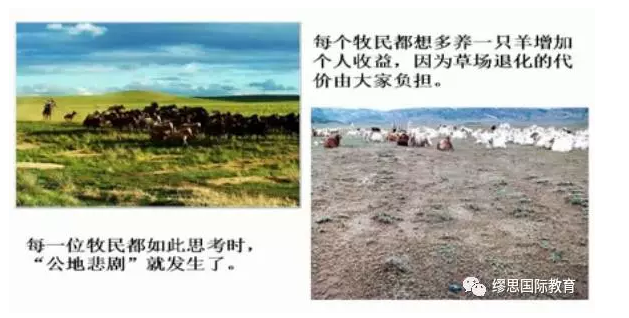 比方说,一个公共鱼塘对所有人开放,一段时间后越来越多的人来这里捕鱼,很快鱼塘里没有鱼了,最后大家都没有食物。因此我们可以发现只有对鱼塘进行准入限制或者是私有化,才能保证鱼塘一直有鱼。同样,环境污染全球变暖是因为整个地球的大气是流通的,在西伯利亚的某一点二氧化硫排放最终是影响到整个地球的空气质量,但是私有人在这里就行不通,因为我们没有办法把空气圈起来,所以公地悲剧就会无法避免的发生。