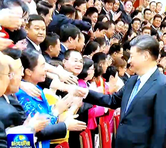 当天上午,天津宾馆会议厅内洋溢着热烈的气氛,参加会见的代表们情绪饱满、精神振奋,有的身穿少数民族盛装,有的胸前佩挂着闪亮的奖牌。11时许,习大大等来到天津宾馆会议厅,全场爆发出雷鸣般的掌声。习大大同参加会见的代表亲切握手,不时交谈并合影留念。