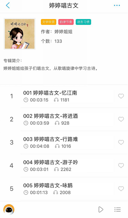 现在,孩子们只要跟阿尔法蛋说:“我想听婷婷唱古文”或“婷婷诗教”就可以听到婷婷姐姐原创的古诗内容。今年夏天,让婷婷姐姐和阿尔法蛋一起,将诗文歌曲送到孩子身边,陪伴孩子们假期生活每一天吧。