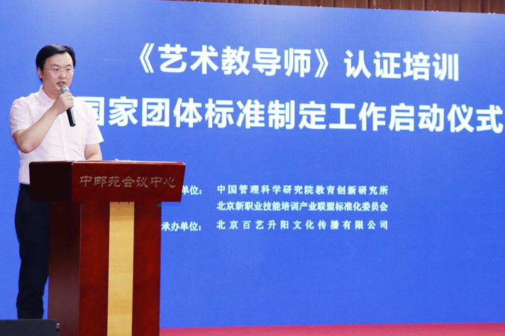 2018年7月8日,“《艺术教导师》岗位能力测评培训认证国家团体标准制定工作启动仪式”在京举行。清华大学研究院专家指导委员会主任、国家科技奖励委员会委员、国家教育咨询委员会委员、博士生导师张秋俭教授,中纪委驻国家市场监督管理总局纪检组原组长、国家市场监督管理总局原党组成员石见元,著名科学计量学家、民进十二届北京市委秘书长、中国管理科学研究院副院长蒋国华,劳动保障部职业技能培训学校原校长臧春祥,著名舞蹈家、国家一级演员、国际美术教育交流委员会常务委员盖一坤,北京师范大学教师教育研究中心、教育学部教师教育研究所教授、博士生导师桑国元教授,北京新职业技能培训产业联盟主席、中国管理科学研究院教育创新研究所所长、专家咨询委员会执行主任、副教授胡锦澜博士,北京新职业技能培训产业联盟副主席陈芸等领导出席会议。