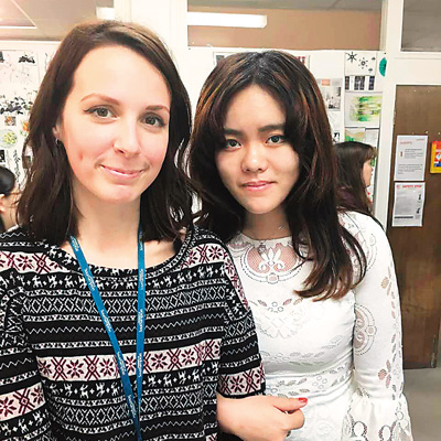 在英国的学习经历提升了王青瑜分配时间和自主学习能力。图为王青瑜(右)和留学时的老师合影。
