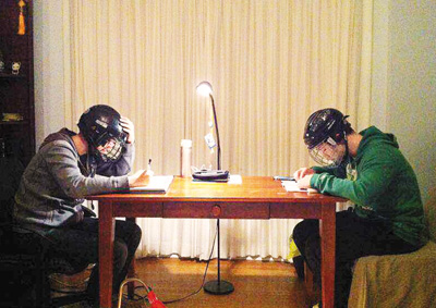 陈焕臻本就对留学生活没有太大憧憬,所以他并没感觉到很大的落差。图为陈焕臻(右)在看书。
