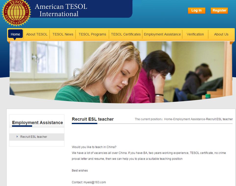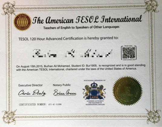 美国TESOL(American TESOL Institute,简称ATI)教师学会是经美国政府批准成立的法人机构,旨在以先进的教育理念面向世界,培训专业化的国际标准英语教学教师并推荐到世界各国任教,目前在全球20多个国家设有分部机构。其颁发的TESOL证书是全球工人的ESL(教授英语为第二语言)教师职业资格证书,其技术水准代表了英语教学技能的国际标准。TESOL证书的有效性和权威性在世界范围内得到充分认可,拥有TESOL证书,成为英语语言培训领域的专家,即拥有了在世界各国从事以英语为第二语言的教学资格。