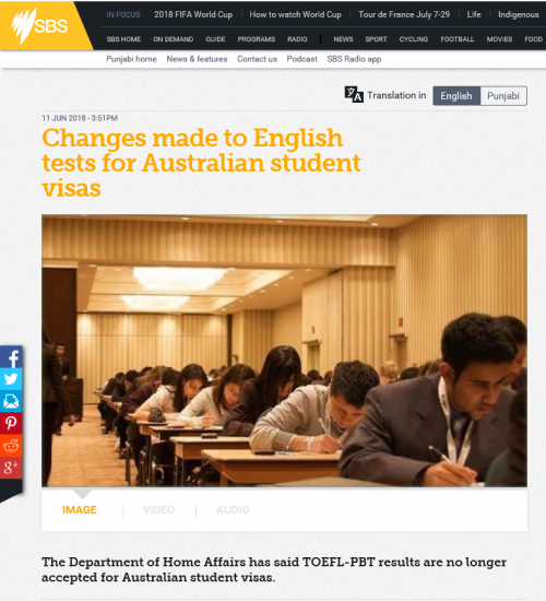 据悉托福纸笔试从去年10月起,就进行了内容调整,其中英语口语没有列入考量范围,但澳洲内政部认为口语技能对于在澳洲面对面交流至关重要,托福纸笔考试成绩不能有效保证申请学生有能力适应澳洲的学习和交流。鉴于托福纸笔考试的内容变化,澳洲内政部将此项考试成绩排除在申请学生签证可接受的英语考试范围之外。不过澳洲内政部仍接受托福机考(TOEFL iBT)成绩。