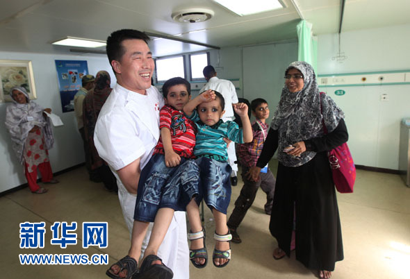 小男孩的母亲激动地告诉记者,小男孩名叫瓦利德 乐迪,今年3岁。“可能是医院船太令人新奇了,他高兴得忘记嘴里的糖果了。中国军医经验丰富、技术精湛。感谢他们救了我的儿子!”