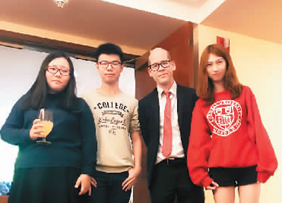 参加班级派对之后,董俊杰(左二)与老师和同学的合影。通过这次派对,他结识了许多新朋友,也进一步融入当地生活。