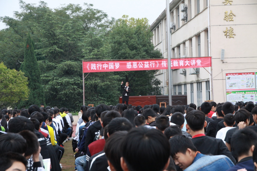 市十六中黄伟报道:“饮水思源,知恩图报”是我们中华民族的优良传统,2017年10月18日上午,新余市第十六中学在操场上隆重举行“践行中国梦 感恩公益行”传统教育大讲堂活动。全校二千多名师生聆听了这场震撼人心的报告。